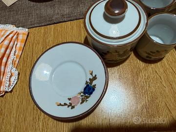 Set antico di tazzine per caffè. Composto da 4 tazzine, con piattino, piccola lattiera e zuccheriera. Nuove mai usate.