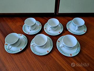 Set di 6 tazzine e sei piattini Morning Glory di porcellana fine in ottime condizioni e mai utilizzate. Sono ancora nella confezione originale che però è un po' rovinata (come si vede nell'immagine)