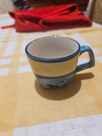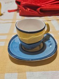 Set di 10 tazzine e 10 piattini. Uno dei piatti ha una piccola spaccatura, ma è intero.