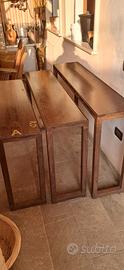 set di tre panche fatte su misura in ferro e legno impilabili salvaspazio per bar ristorante