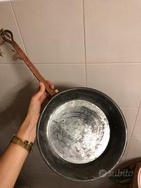 •1 padella con manico in ferro battuto