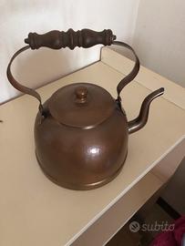 •1 bollitore in rame con manico in legno sagomato