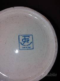 Set composto da tre pezzi in porcellana decorata a soggetto floreale composto da due vasi di altezza 26 cm e 31 cm e da un contenitore con coperchio in porcellana FG