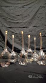 vendo 6 bottiglie/caraffe in vetro soffiato a bocca. usato pezzi di artigianato si distinguono per il design e lo stile di vetrerie italiane. a collo lungo e sottile e corpo a goccia. ben conservate. vendo in blocco.. se interessati posso inviare altre foto...