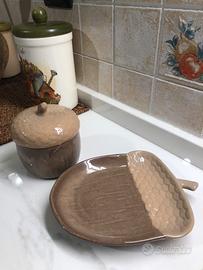 Simpatico set con contenitore a forma di chiamda con il suo piattino uguale
