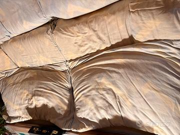 Vendo due divani con cuscini, con ritiro a Terlizzi Larghezza 90 cm Lunghezza 2 mt e 2,40 mt Altezza dal bracciolo: 53 cm Altezza dallo schienale: 80 cm