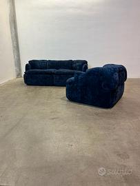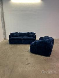 Il set Confidential disegnato da Alberto Rosselli per Saporiti Italia è una delle espressioni più raffinate del design italiano degli anni Settanta. In questa versione composta da divano due posti e poltrona, il progetto rivela tutta la sua forza scultorea e la sua eleganza senza tempo, oggi valorizzata da un restauro completo che lo riporta allo splendore originale.