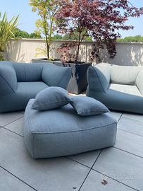 Vendo set divani da esterno della Gart composto da due poltrone, una chaise longue e un puff. Colore grigio con sfumature azzurre. Molto comodi e adatti all'ambiente esterno. Dimensioni della chaise longue: Larghezza: 1,05 m X lunghezza 1,65m. Dimensioni dei divani: Larghezza 110cm x 38 cm