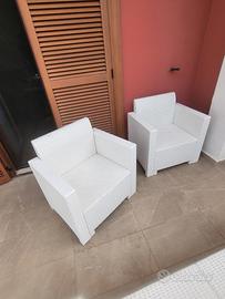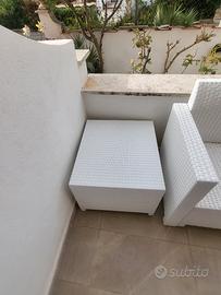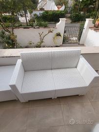 Vendo, causa inutilizzo, set di divani da esterno con cuscini. In particolare ci sono 2 poltrone singole, un divano a 2 posti e un poggia vivande con cassetto interno. Perfette condizioni. Massima serietà e disponibilità.