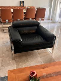 Descrizione Prodotto: Set Divani Designer in Vera Pelle "Nirvana" di Calia Italia In vendita un elegante e lussuoso set di divani in vera pelle nera del rinomato marchio italiano Calia Italia, modello Nirvana (CAL. 5018). Questo set, composto da due divani a 3 posti e una poltrona (1 posto), rappresenta l'eccellenza del design Made in Italy, unendo linee moderne a un comfort eccezionale. Dettagli Prodotto e Condizione: • Marca: Calia Italia • Modello: Nirvana (CAL. 5018) • Composizione: 2 x Divano 3 Posti, 1 x Poltrona 1 Posto • Materiale: Vera Pelle Nera (codice A1516 Nero) • Caratteristiche: Struttura robusta, braccioli larghi e poggiatesta regolabili manualmente (High Density Padding). • Utilizzo: Circa 7 anni (Acquistato fine 2018) • Stato: Ottime condizioni generali e ben mantenuto. • Cura: Regolarmente trattato e nutrito con prodotti specifici per la pelle, il rivestimento presenta una bella patina tipica della vera pelle, senza difetti o danni evidenti. • Provenienza: Casa di non fumatori e senza animali domestici, il che garantisce l'assenza di odori persistenti e peli. Questa è un'opportunità unica per acquistare un set di divani di altissima qualità e design italiano ad un valore eccezionale, perfetto per un soggiorno elegante e confortevole. Solo ritiro (luogo da specificare), prezzo trattabile