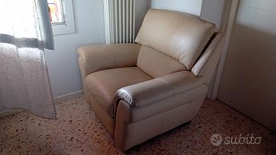 vendesi set 2 divani e poltrona in pelle beige tenuti molto bene