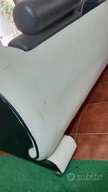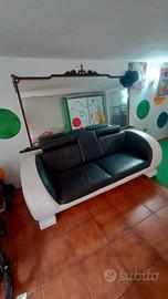 Divani in pelle tre due e un posto con poggia piedi. Il divano a tre posti presenta delle imperfezioni sul retro e una leggera macchia davanti. Vedi foto. Vendo per inutilizzo.
