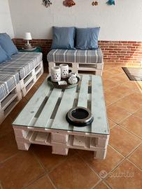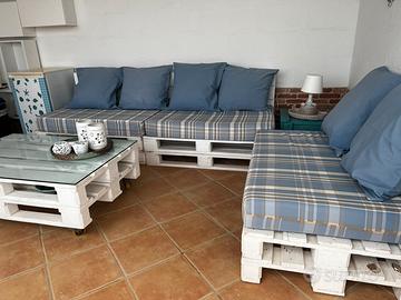 Vendo set composto da n.3 divani biposto (120x80x40h cadauno) completi di cuscineria e n.1 tavolo con ruote). Il prezzo è riferito al set completo.