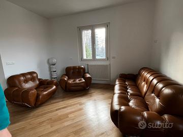 Splendido set formato da 1 grande divano 3 posti e due poltrone in stile space age . Originale anni 60/70 ,in vera pelle e tubolare di metallo cromato . Condizioni dell'articolo ottime considerando l'età .