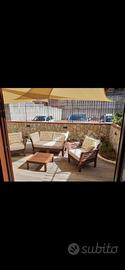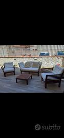 Set divano da giardino composto da divano a 2 posti, due poltrone, tavolino e cuscini inclusi. Ideale per arredare spazi esterni con comfort e stile. Prezzo: €500.