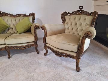 Vendo set divano 3 posti e due poltrone. NO VINTAGE ma ORIGINALI. Il tutto è stato ristrutturato da pochi mesi. Tappezzeria interamente impermeabile e tutti i pioletti nuovi. E' stato fatto un lavoro perfetto, curato nei minimi dettagli. Solo per interessati!!!