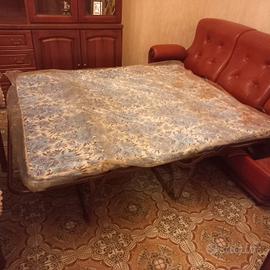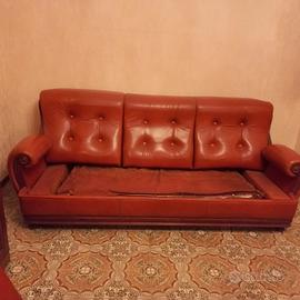 Vendo questo set di divano letto 3 posti e due poltrone in vera pelle e legno massello, sono degli anni 2000 ma usati pochissimo, la pelle è in ottimo stato. Le misure del divano sono 210x90x100 di profondità mentre le poltrone misurano 90x90x100 di profondità.