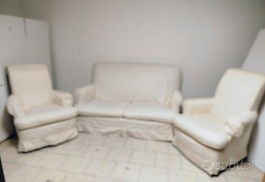 Set Divano due posti. Poltrone due. Tessuto Bianco lavabile.