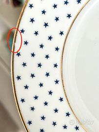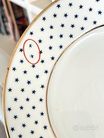 Un pezzo di storia della manifattura italiana, caratterizzato da un delicato motivo a stelline blu e bordi rifiniti in oro zecchino.