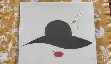Set comprensivo di due stampe su tela bianca. Rappresentano volto di donna con cappello e uomo con baffi. Misure 30x30. Condizioni perfette, ancora confezionate.