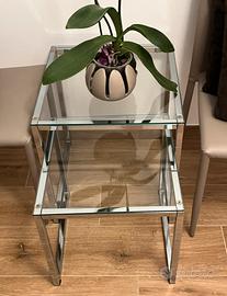 set due tavolini in vetro temprato e struttila in acciaio cromato