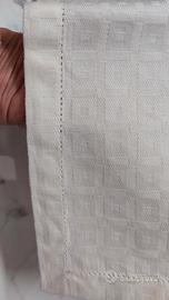 Due tovagliette all'americana colore écru, avorio, in puro cotone, con orlo a giorno e ricamo centrale. Fattura made in Italy. Dimensioni: 51x33 e 48x 32
