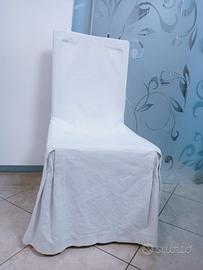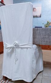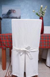 Set eleganti Coprisedie con fiocco. Le foto mostrano l'ampiezza sugli angoli conferita dai cugni, il fiocco sul retro dona un tocco di raffinatezza. L'ordine comprende n. 4 coprisedie in ottimo cotone bianco.