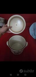 Vendo fagiolata composta da pignata e 6 tegamini in terracotta. Solo un tegame è scheggiato, come si vede in foto. Prezzo: 30€