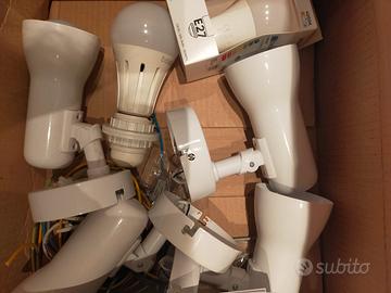 Quattro faretti luci direzionabili e montabili sia verso l'alto che verso il basso con lampadine, caratteristiche come da foto.