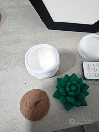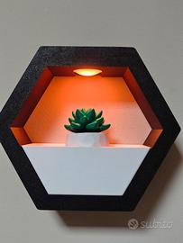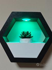 set 3 fioriere con piantine grasse finte scegli tu il colore della luce con il telecomando incluso possibilità di usarle anche solo come mensoline piantina grassa con vano per nascondere qualcosa per composizioni differenti non esitare a contattarmi