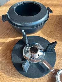 Set per fonduta - bourguignonne in ghisa nera, completo di fornello, ricarica.