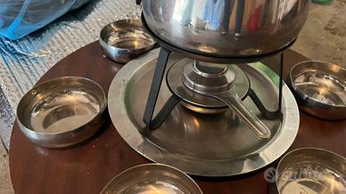 Set fonduta completo di ciotole … inox … fornello .. vassoio girevole