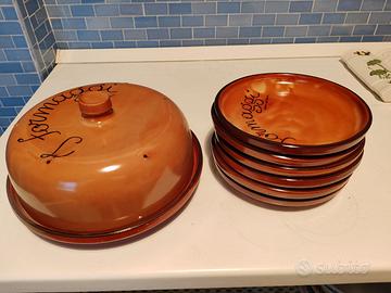 - 6 piatti in terracotta con scritta calligrafica formaggi.