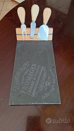 Il set contiene Un tagliere in ardesia e legno con gommini antigraffio sottostanti 1 supportocalamitato 3 coltelli