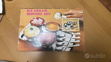 Set gelato di 4 coppette e cucchiaini con vassoio e pinza per prendere il gelato