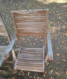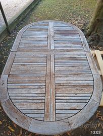tavolo allungabile per 8 persone in legno teack,con 4 sedie pieghevoli e una sedia con braccioli sempre pieghevole,da riverniciare,ritiro in loco