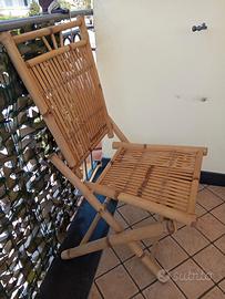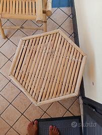 Set giardino o terrazzo in bambù composto da 4 sedie pieghevoli complete di cuscini e schienali, 1 tavolino basso.