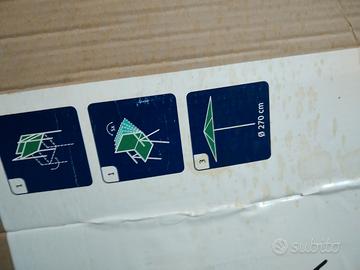 il set è composto da 1 tavolo in metallo con piano in cristallo con foro centrale dove inserire l ombrellone in dotazione e n'6 comodissime poltrone richiudibili in metallo con imbottitura molto comoda con poggia testa. mai usato, ancora imballato
