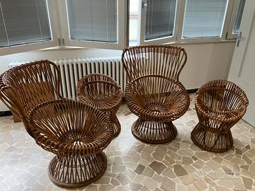 Set da giardino compsto da due poltrone margherita deldesigner Franco Albini, due poltroncine e carrello porta bevande. Cuscini nuovi appena rifatti. Condizioni generali ottime