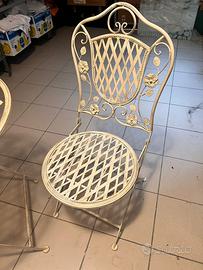 Sedia e tavolino da esterno in ferro battuto bianco