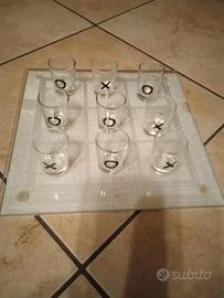 Set di bicchieri con gioco tris, mai usato, completo di scatola
