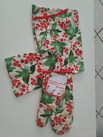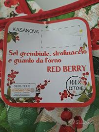 set grembiule, strofinaccio e guanti da forno red berry, marca Kasanova, nuovo mai usato