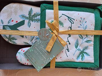 Set guantone da forno e presina. Ditta: Amo la casa Dimensioni cm. : 18x30 e 17x17 Rivestimento: 100% cotone Imbottitura. 100% poliestere