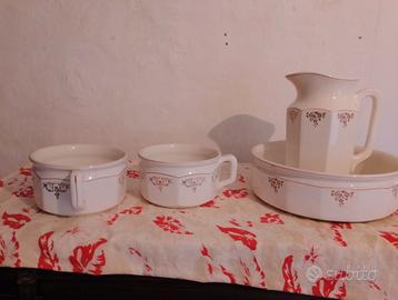 Set toilette primi novecento in ceramica composto di 4 pezzi nuovo ,si preferisce il ritiro ma disponibile alla spedizione.