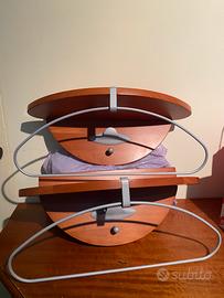 •2 appendiabiti da parete coordinati in legno e metallo satinato, con mensola e gancio ampio, ideali per giacche, borse o accessori.