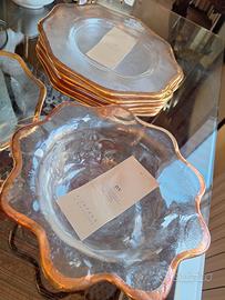 Bellissimo ed elegante set del marchio Made in Italy IVV Industria Vetraria Valdarnese. Realizzato in vetro texturizzato con bordo dorato applicato a mano.