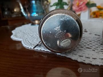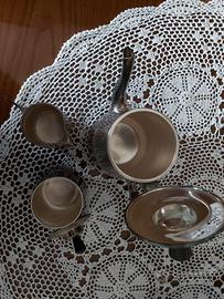 Set vintageJordan Sheffield Collection così composto: - zuccheriera con coperchio pomo legno h.cm.13 apertura diametro cm.6,5 - caraffa con pomo e manico in legno h.cm.22 apertura diametro cm.7,5 - bricco h.cm.9 apertura diametro cm.5