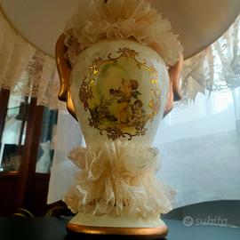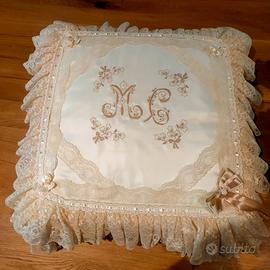 Set lampada e cuscino ricamati a mano colore avorio in due tonalità, non effettuo spedizione.
