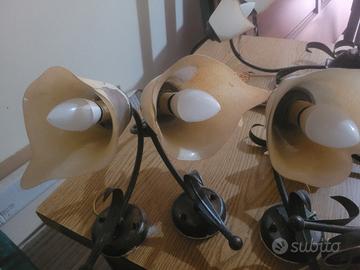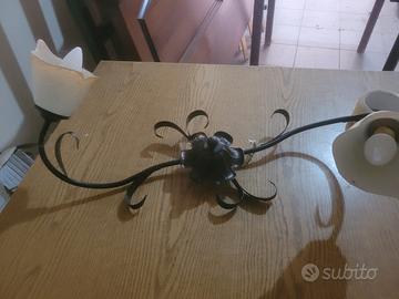 vendo due bellissimi lampadari e 4 applique coordinate per cambio arredamento. le applique presentano segni di usura i d.ue lampadari sono intatti. Uno è a 4 lampadine il secondo a due. Regalo in oltre le lampadine . No perditempo prezzo trattabile. cell 3357547402.