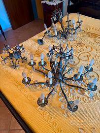 Set 3lampadari in ferro battuto con gocce in vetro